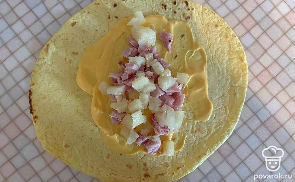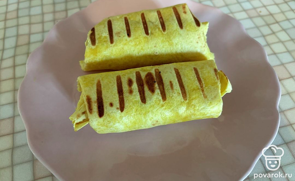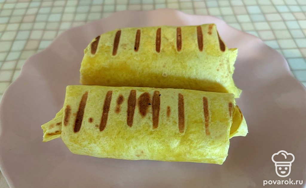 Обжарьте сырную шаурму на сухой сковороде или гриле до золотистой корочки. Примерно 5 минут.