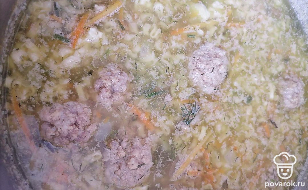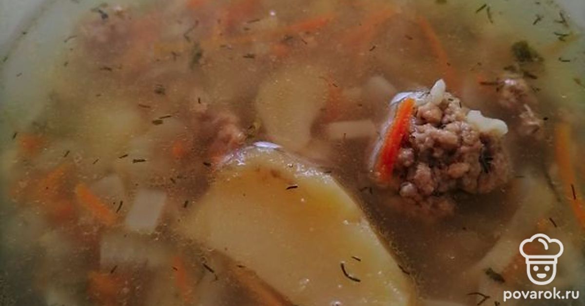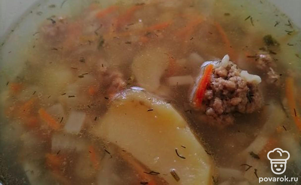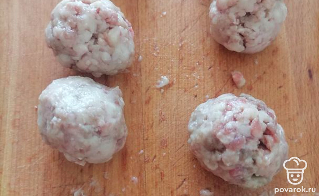 Из фарша скатайте небольшие шарики и опустите их в кипящий бульон с картофелем. Варите еще 10 минут.