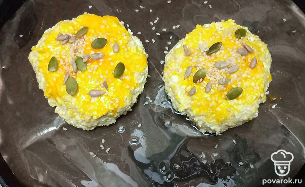 Посыпьте смесью семян и поставьте в разогретую духовку.