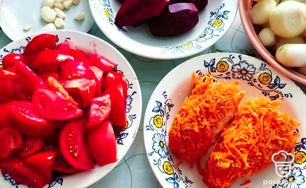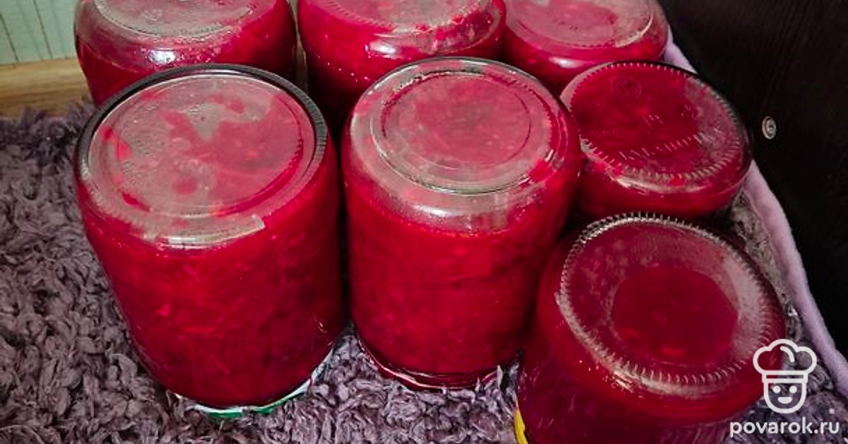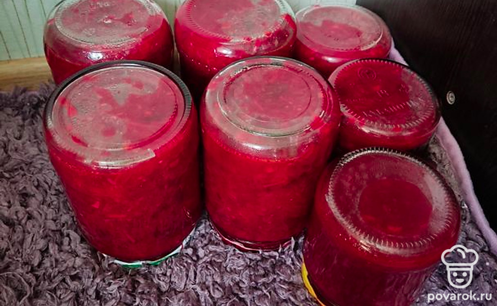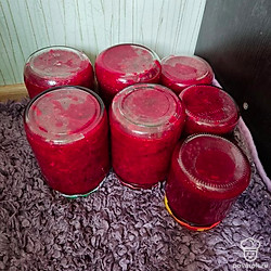Очень люблю борщ, но часто нет времени на готовку, поэтому делаю заготовку в банках. Зимой добавляю в готовый бульон картошку, капусту и содержимое этих баночек. И борщ готов!