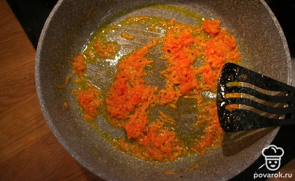Морковь обжарьте в течение пары минут на разогретом масле до мягкости.