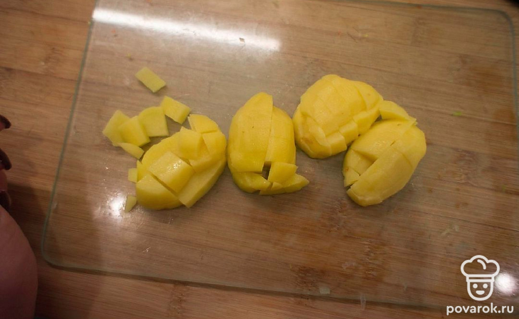 По желанию, можете добавить 2 небольшие картофелины, нарезанные на кубики.