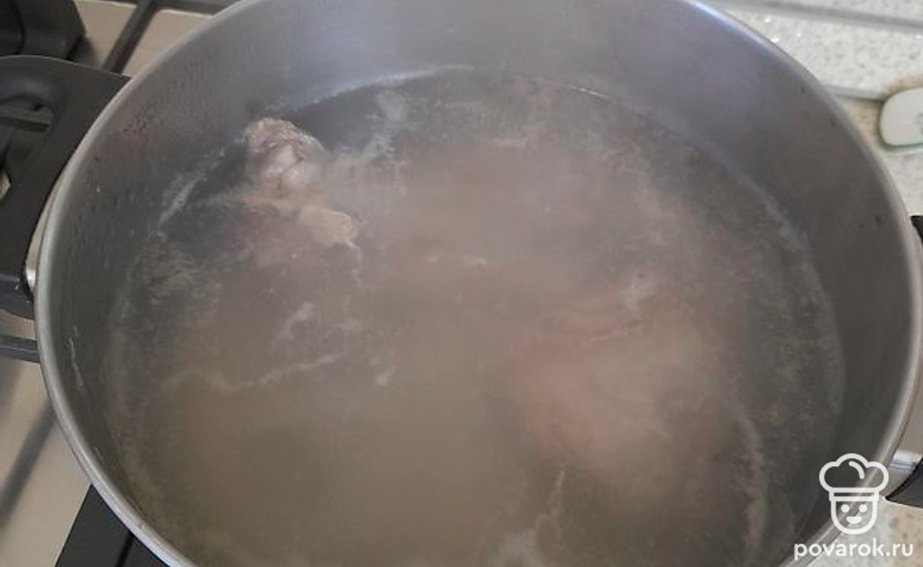 Положить в кастрюлю с холодной водой мясо.