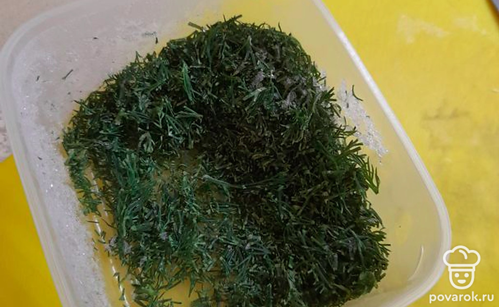 Выложить нарубленную зелень.