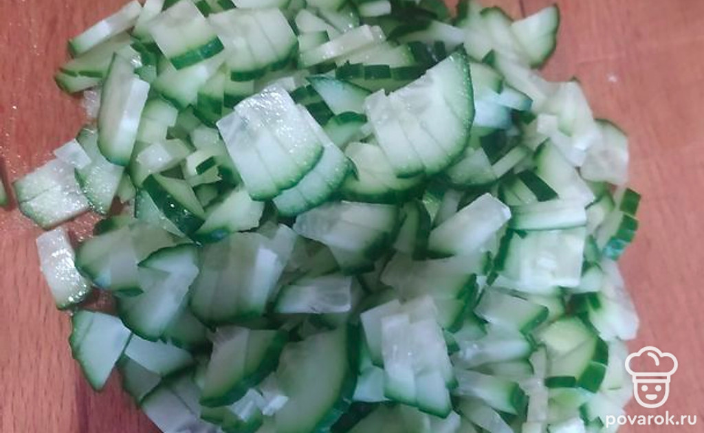 Нарезаем огурец.