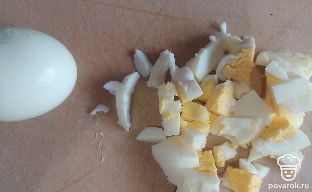 Отвариваем яйца и крошим их.