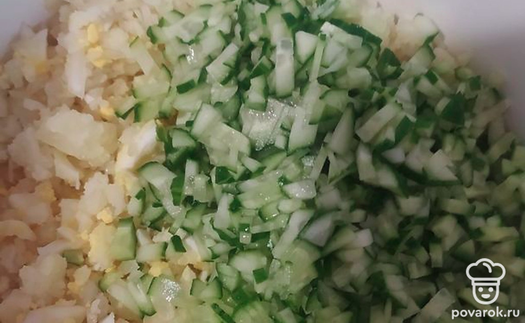 Отвариваем картофель, шинкуем.