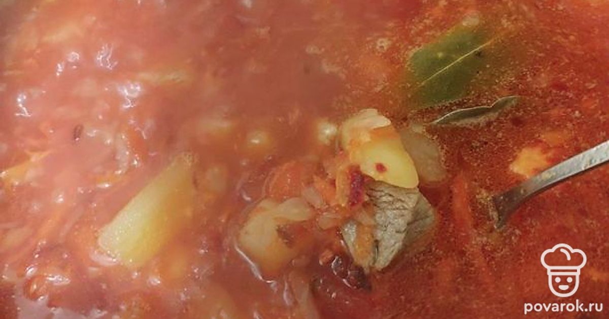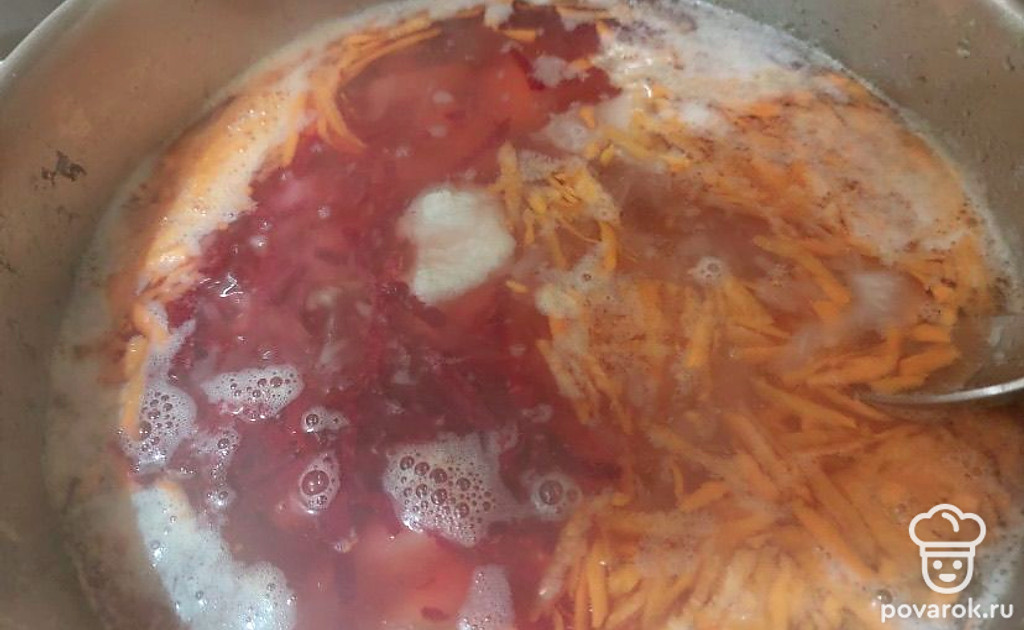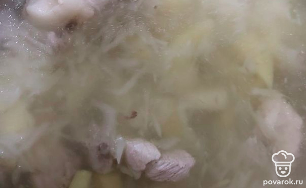 Добавляем зажарку к бульону, готовим еще 5 минут.