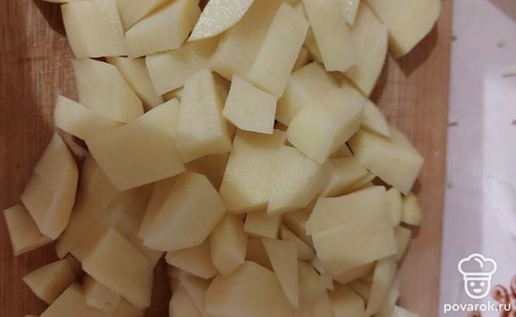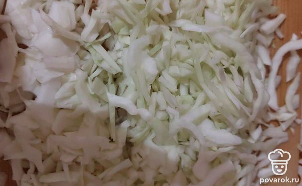 Добавляем картофель и капусту к мясу, добавляем специи по вкусу.