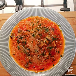 В кипящий суп добавляем фунчозу. Варим еще 1 минуту. Суп готов.