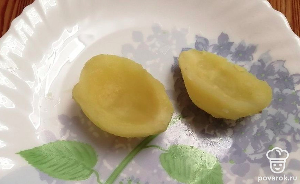 Разрежьте картофель пополам. Аккуратно чайной ложкой удалите середину.