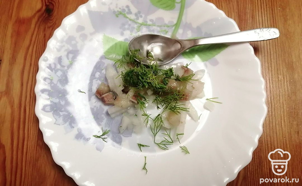Добавьте мелко нарезанный укроп. Хорошо перемешайте.