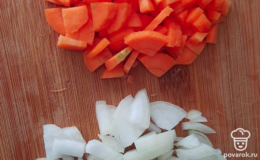Лук режем на мелкий кубик.