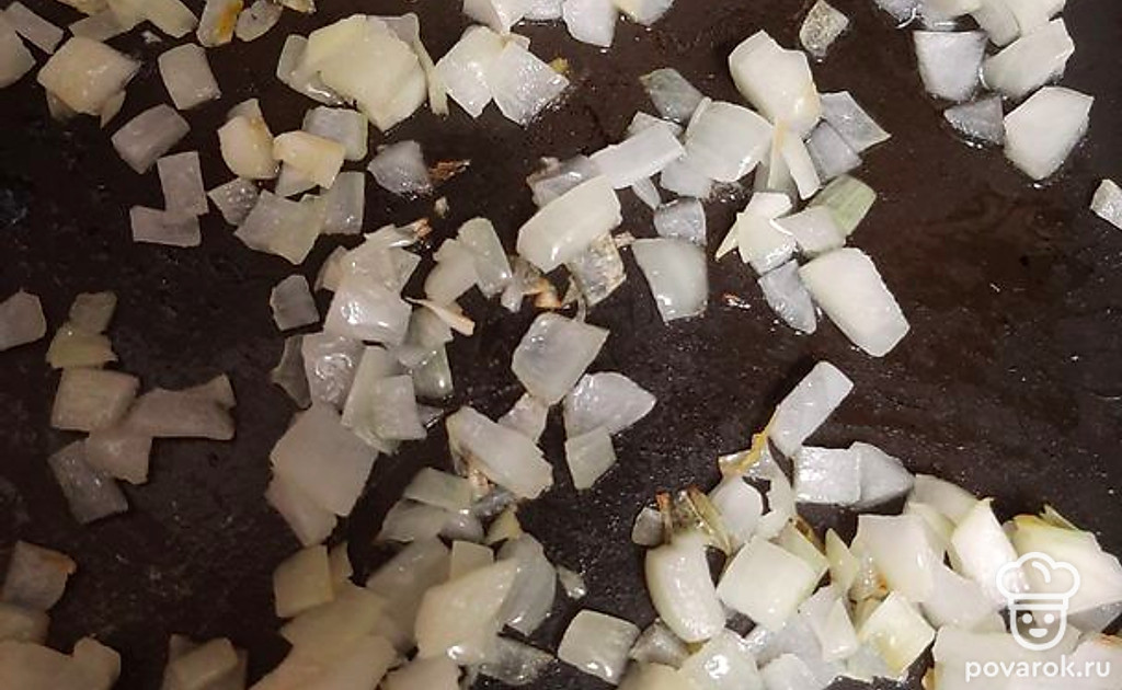 Обжариваем лук на сковороде до золотистого цвета.