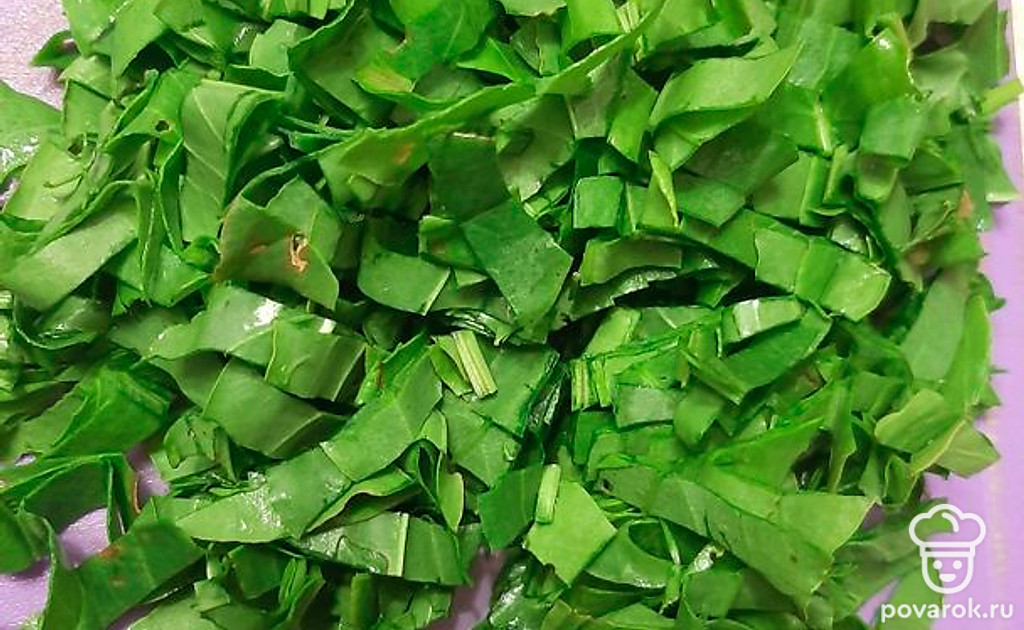 Щавель режем на средние полоски.