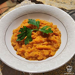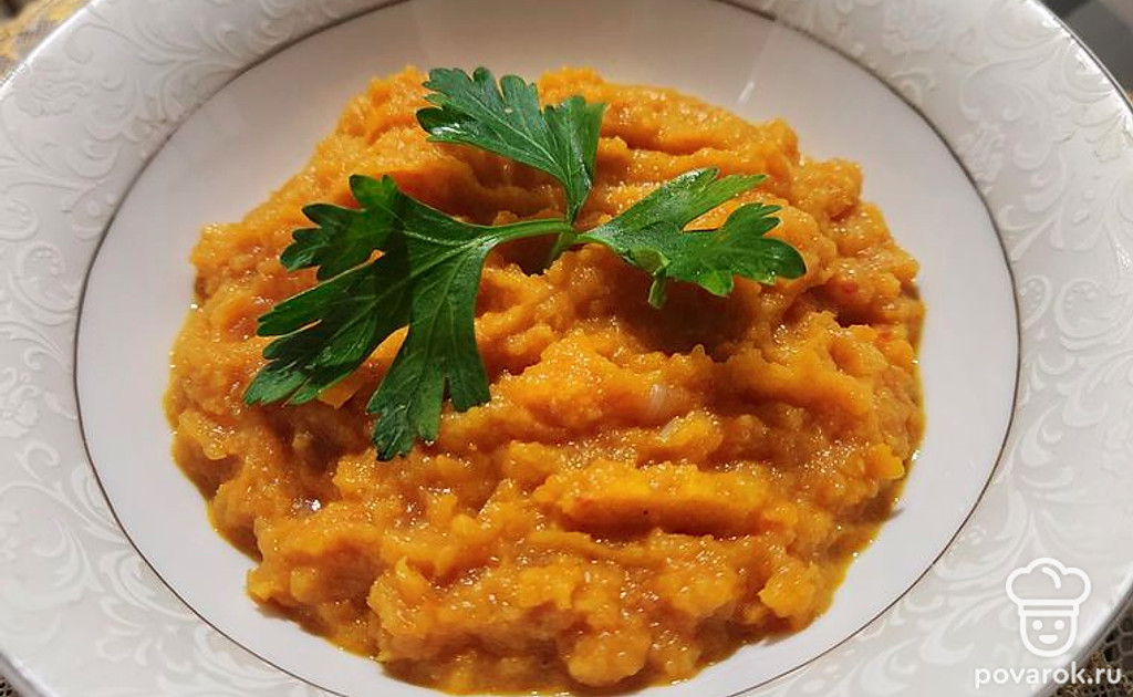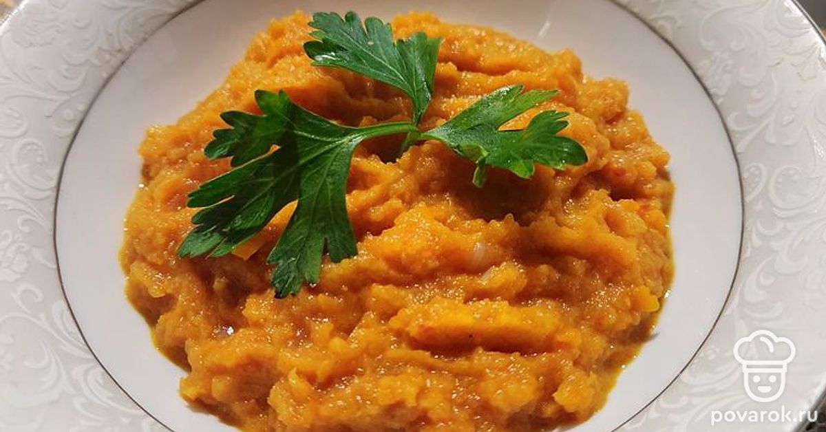 В кастрюлю выложите тушеные овощи и нарезанные кабачки. Добавьте соль, сахар, перец и уксус. Тушите примерно 45 минут, постоянно помешивая. В конце добавьте мелко нарезанный чеснок. Тушите 2-3 минуты. Затем тщательно пробейте массу блендером.