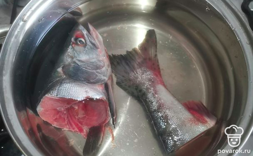 Приготовить ингредиенты. Я использовала плавники, голову, хвост.