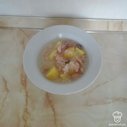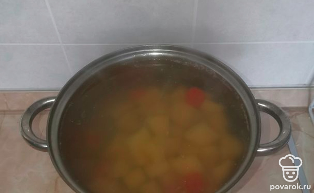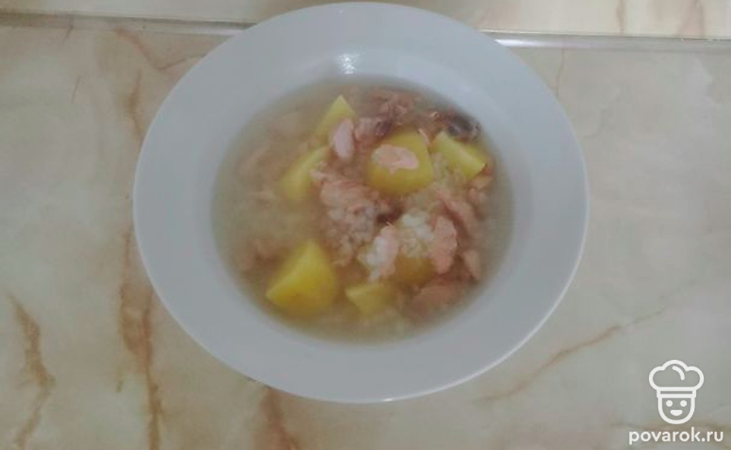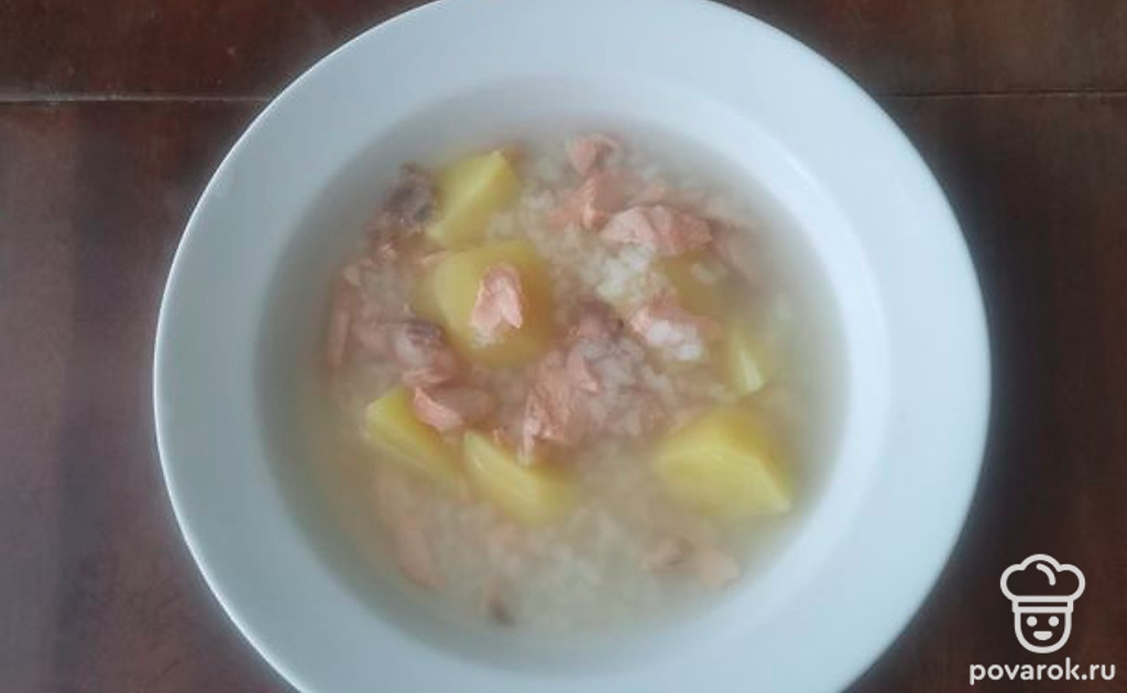 Сначала добавить овощи. Потом картошку. Потом рис. Рыбу разобрать и добавить в бульон. Соль по вкусу.