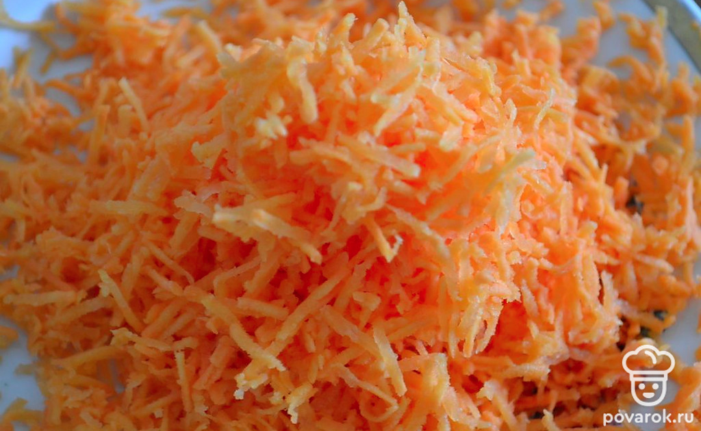 Морковь натираем на мелкой терке, лук мелко нарезаем.