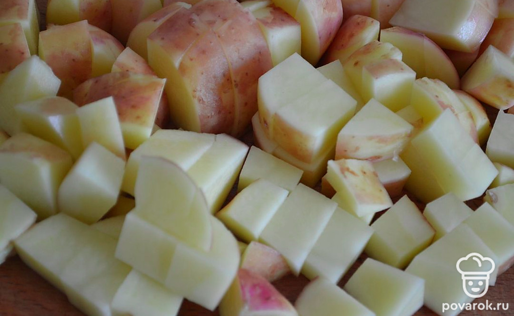 Картофель нарезаем кубиком.
