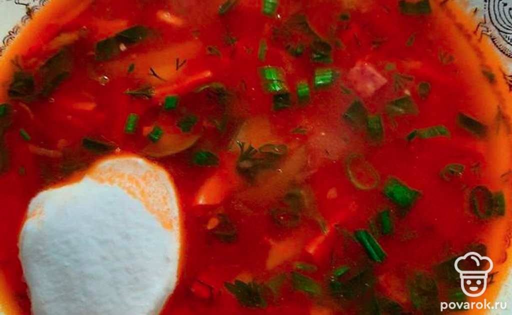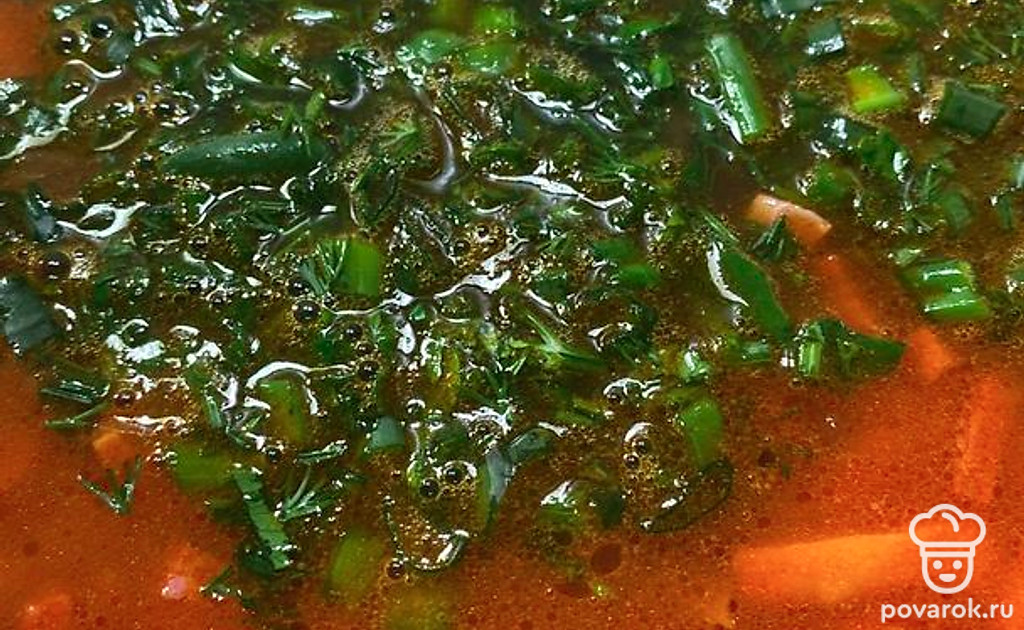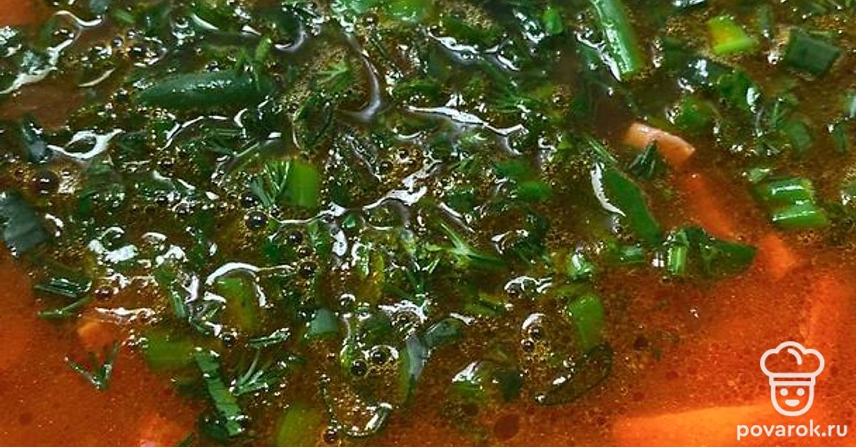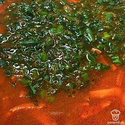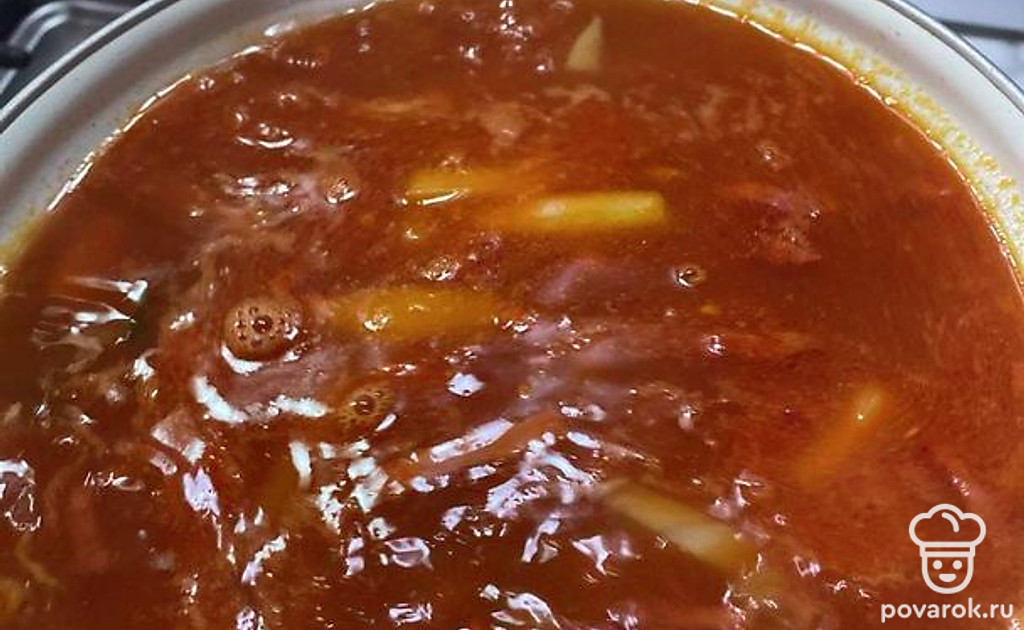 Богатая солянка на говяжьем бульоне с добавлением аджики и перца чили