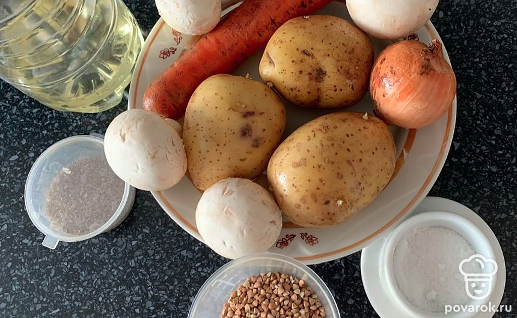 Грибной суп с гречкой и овощами