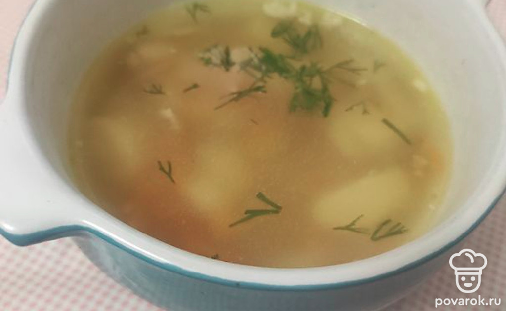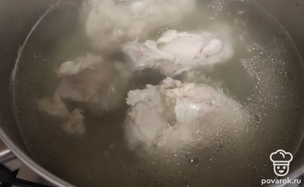 В суп выложить курицу, довести до кипения и готовить еще несколько минут.