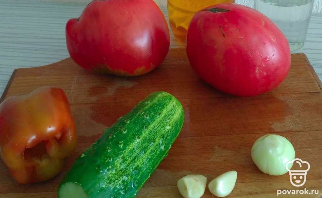 Подготовить все ингредиенты. Хорошо помыть овощи, почистить лук и чеснок.
