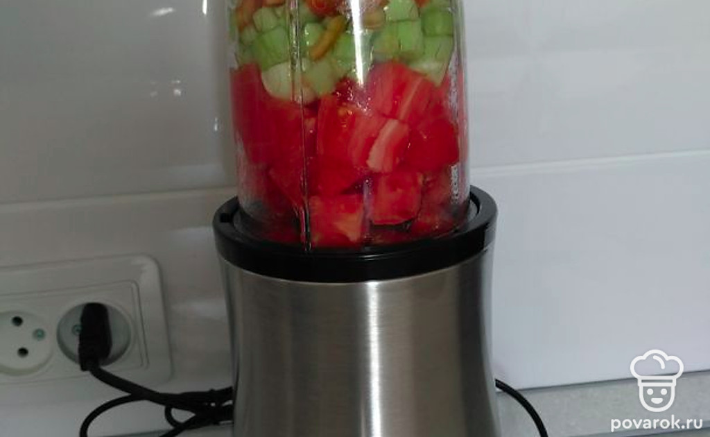 Быстрый вариант холодного супа «Гаспачо». Жарким летом очень даже в тему. А сколько в нем витаминов! Попробуйте и вы!