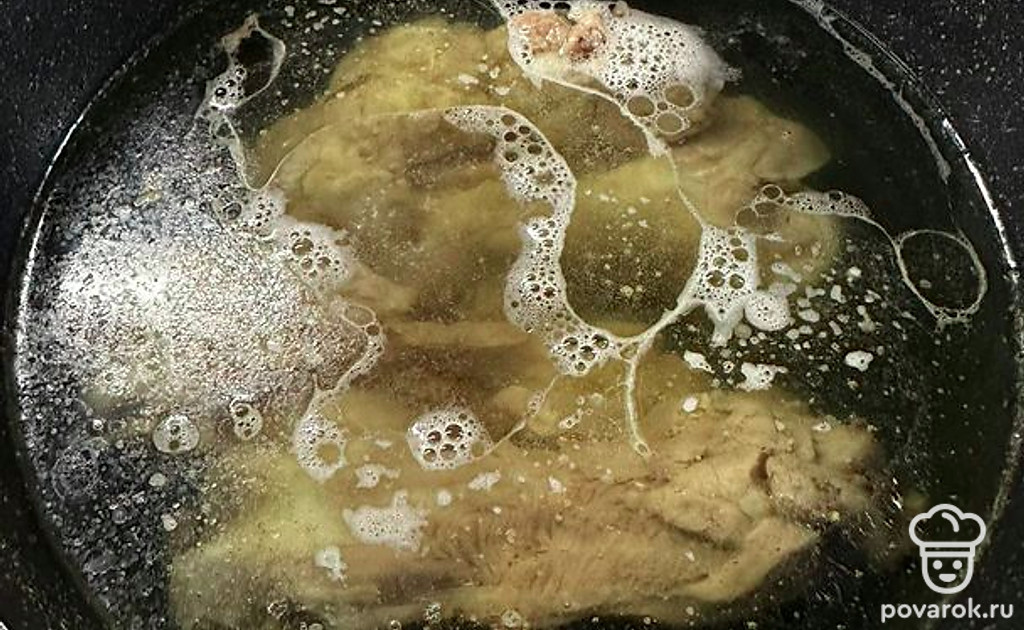 Отвариваем бульон. Добавляем соль и перец по вкусу.