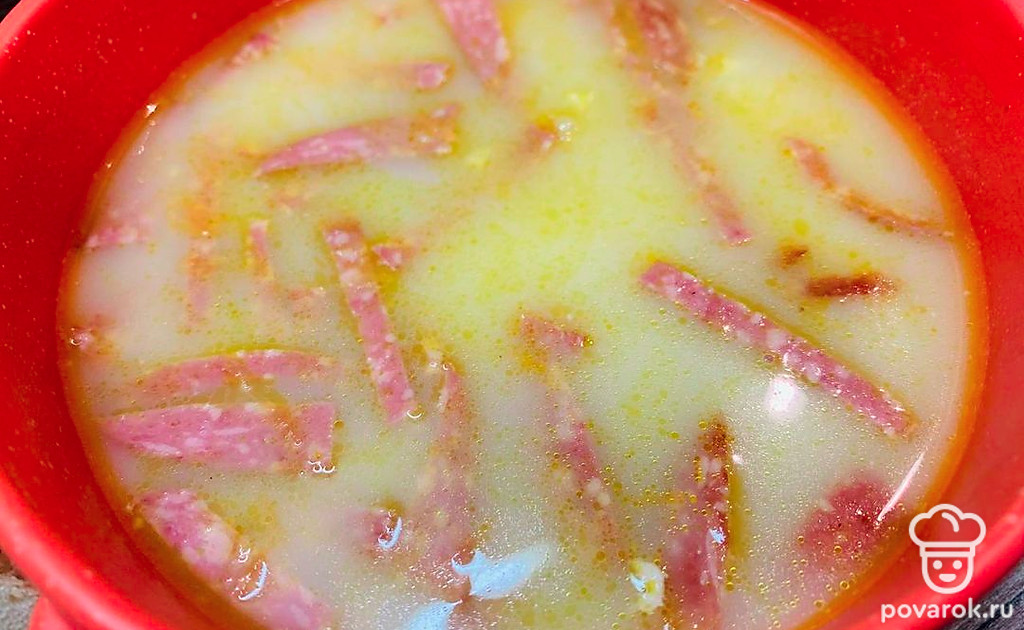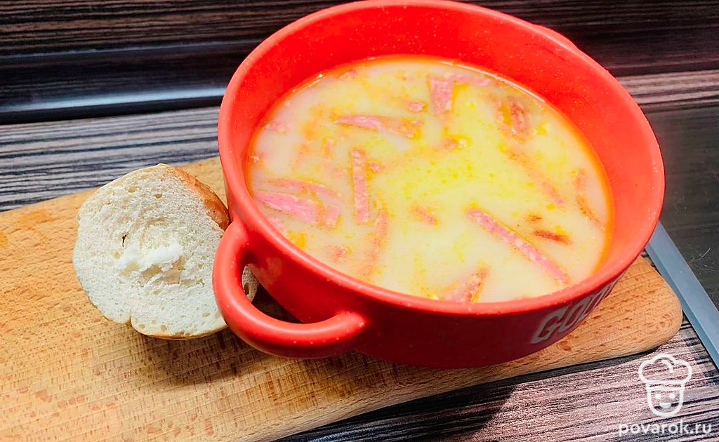 Это рецепт очень вкусного супа из ингредиентов, которые найдутся в любом холодильнике. Мы используем здесь плавленый сыр и любую копченую колбасу, в данном случае сервелат. Давайте приступим!