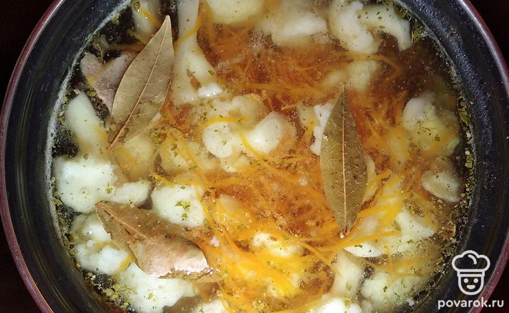 Добавить специи и лавровый лист, минут через 10 снять с плиты.