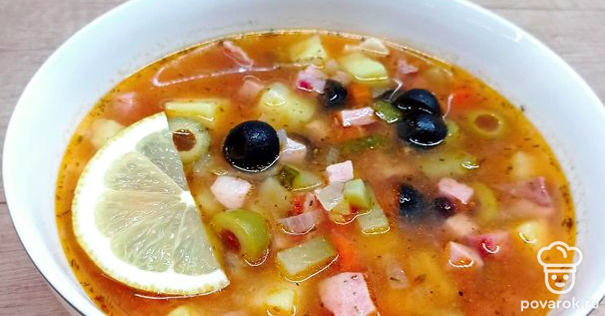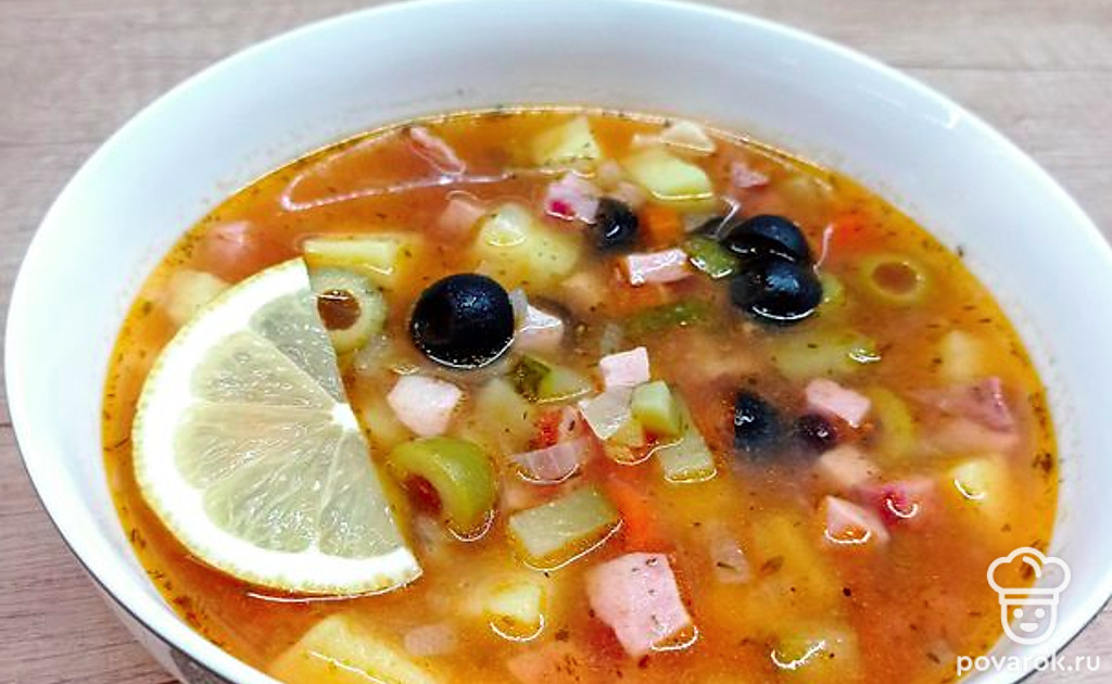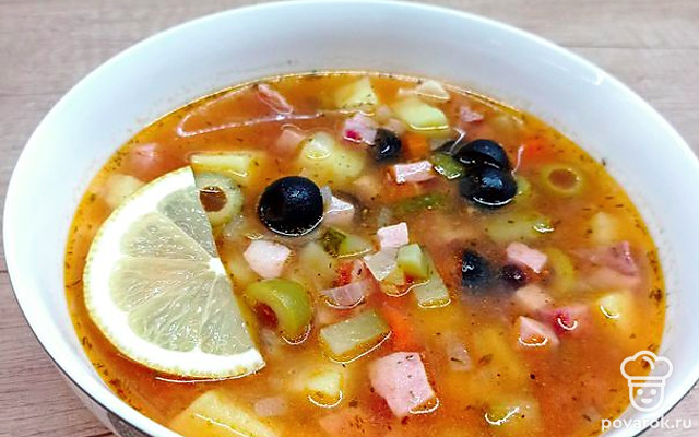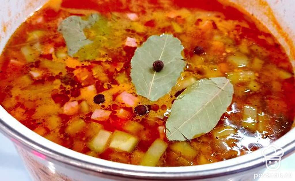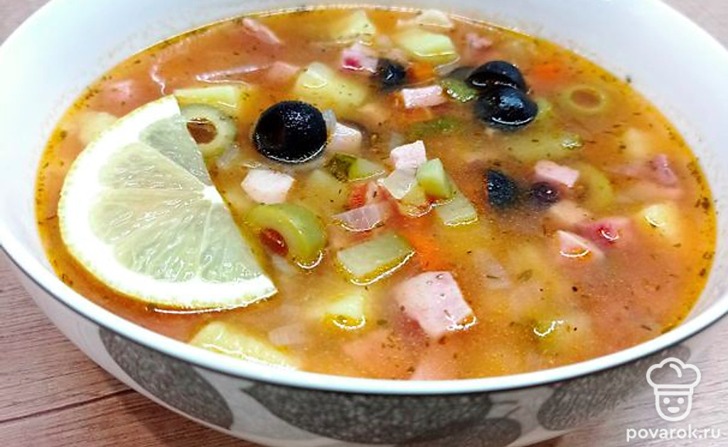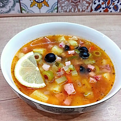 Сборная мясная солянка со свининой, ветчиной и карбонадом