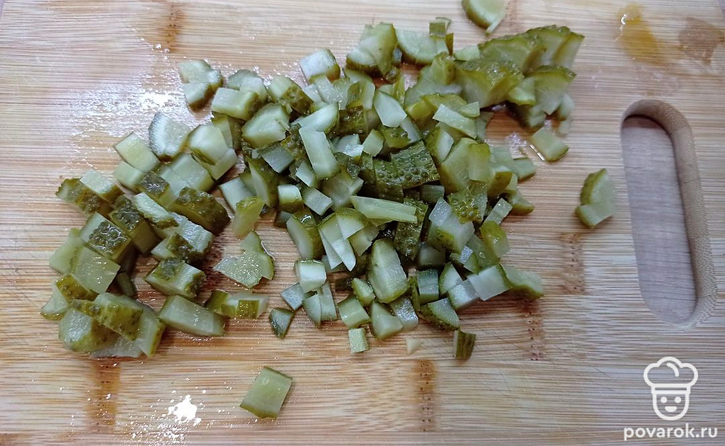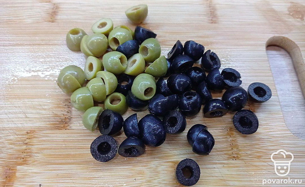 Переложить огурцы, мясо и оливки с маслинами в суп, добавить специи по вкусу.