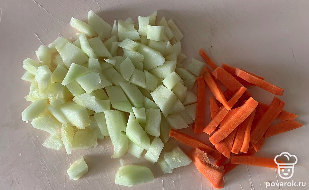 Кабачок и морковку очистите. Нарежьте кусочками.