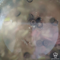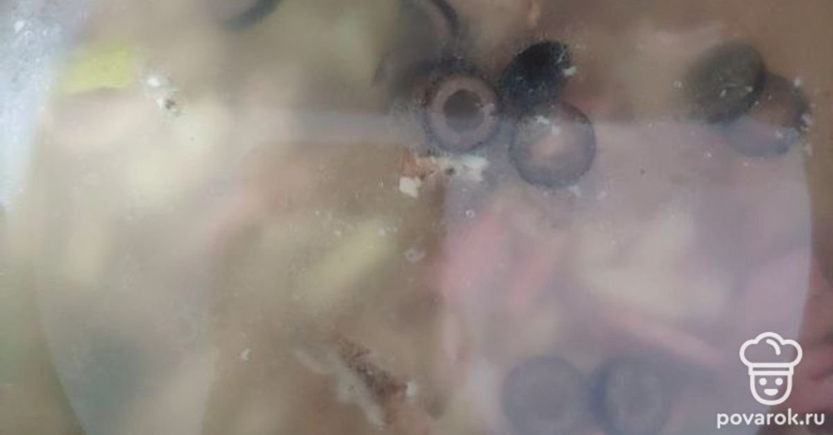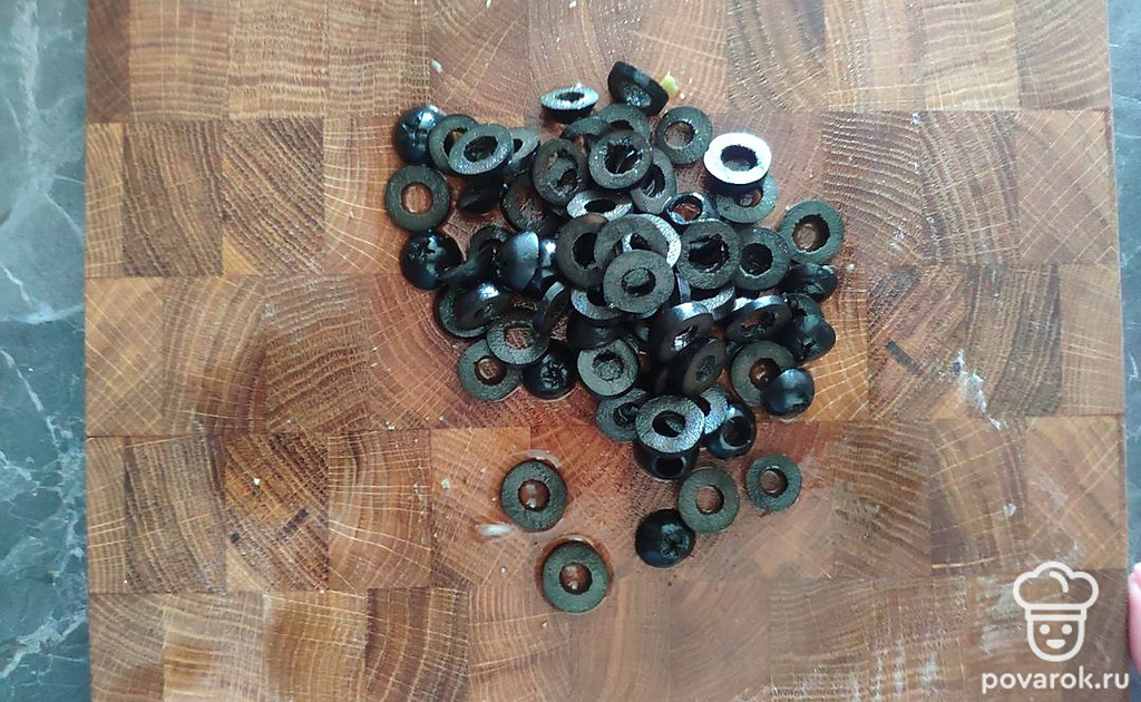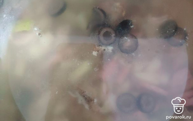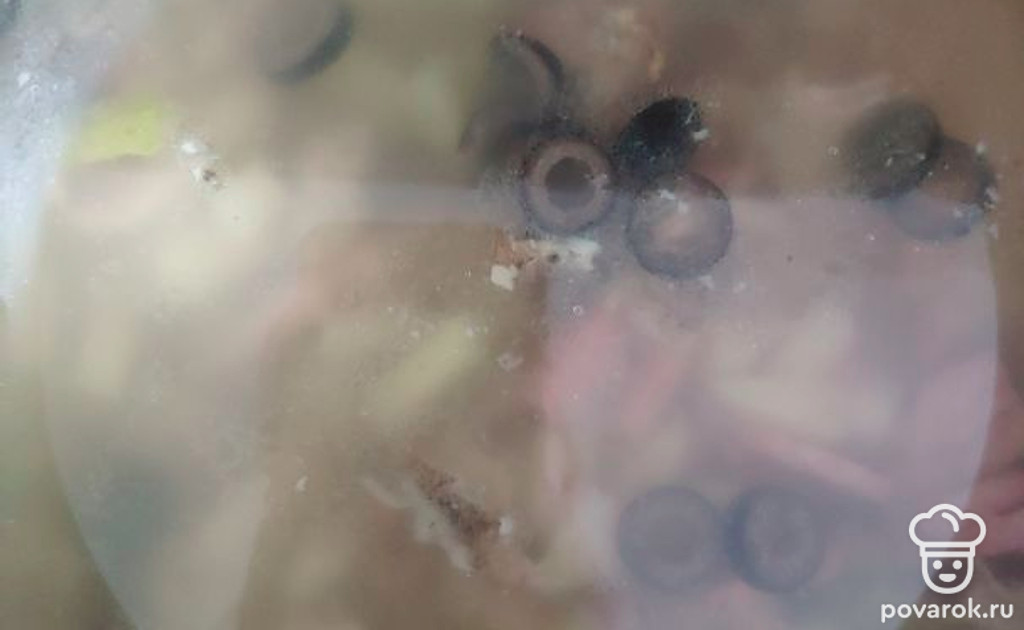 Порезать маслины или оливки, добавить туда же. Ещё можно добавить немного рассола от оливок или маслин прямо в суп.