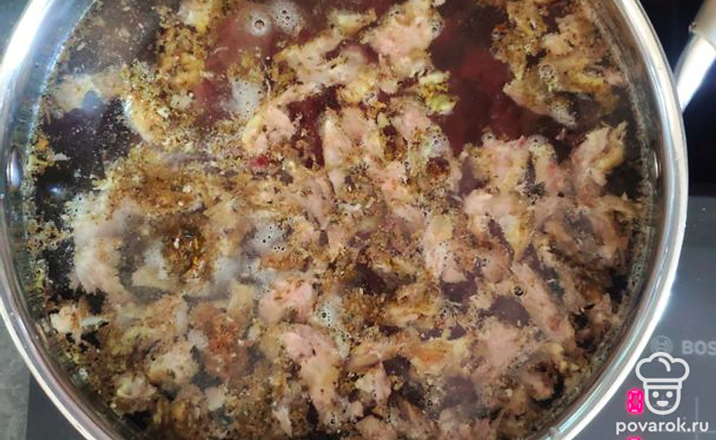 Вытащить суповой набор, отделить мясо от костей, мясо отправить в суп.