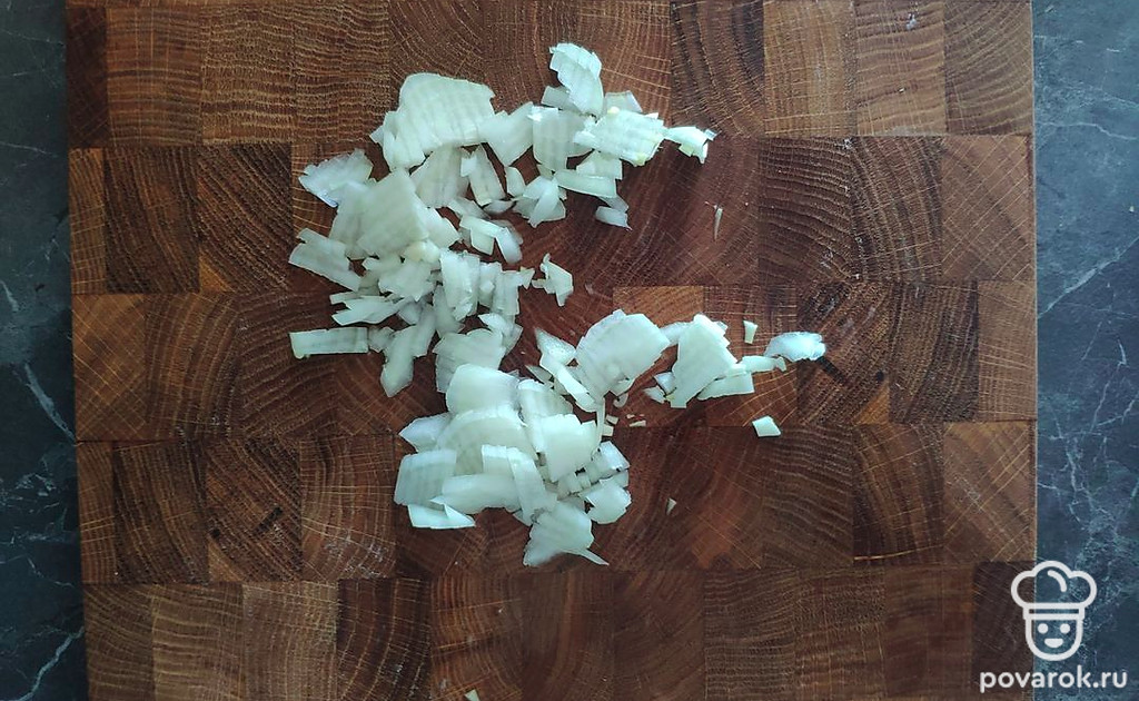 Порезать мелко лук, поставить пассероваться в сковороду на медленном огне. Добавить в суп.