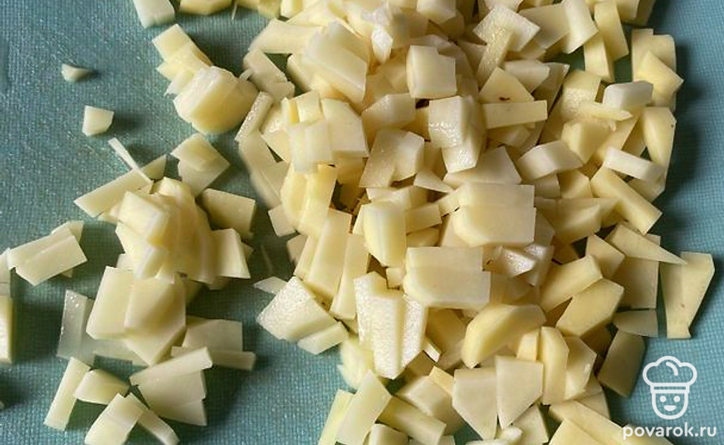Затем сразу добавляем картофель к куриному бедру. Варим на медленном огне 20 минут.