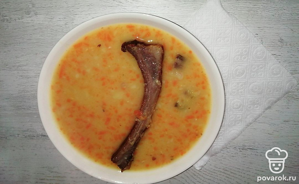 Гороховый суп с копчеными ребрышками