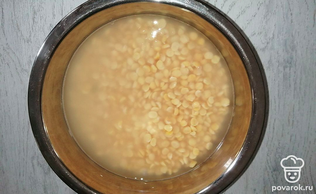 Колотый горох промыть и оставить в воде для размачивания на 1 час.