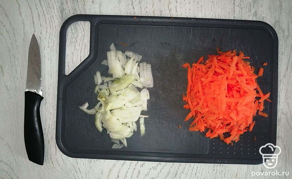 Нарезать лук и натереть на терке.
