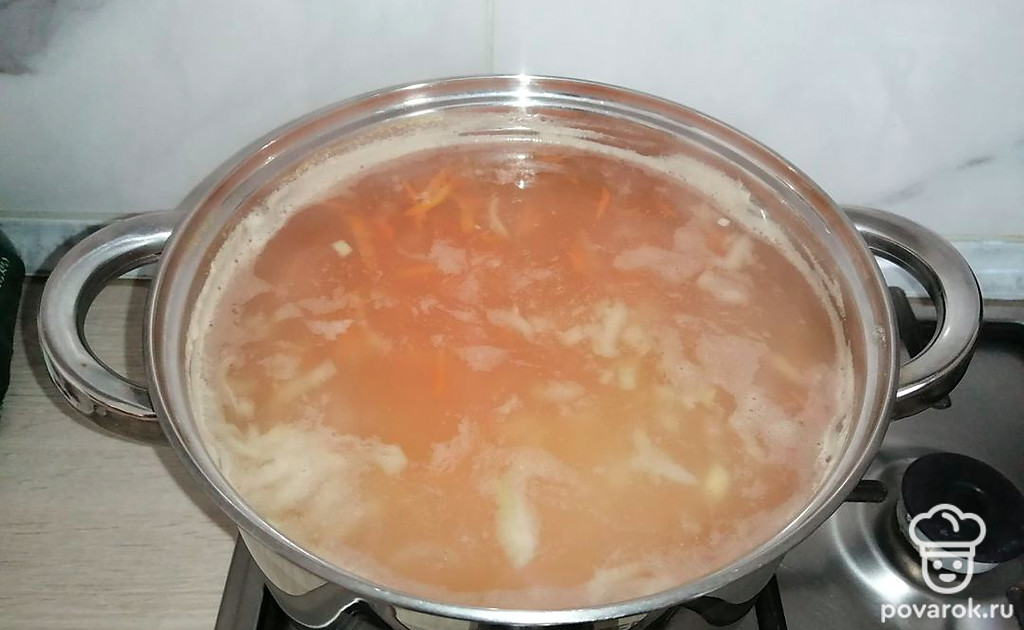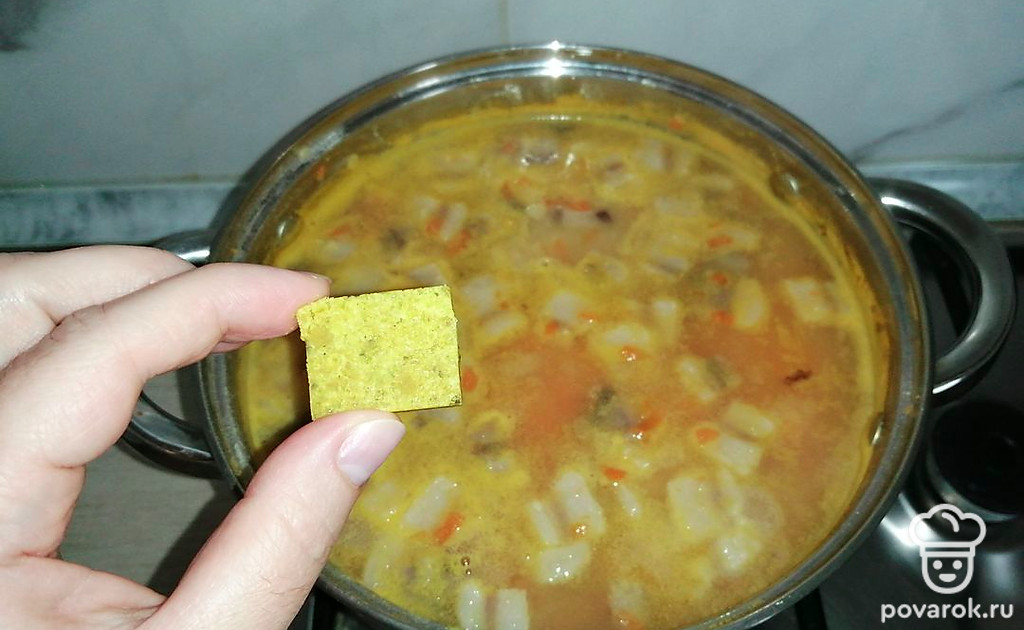 Добавить в суп соль, приправу для бульона и варить еще 10 минут.