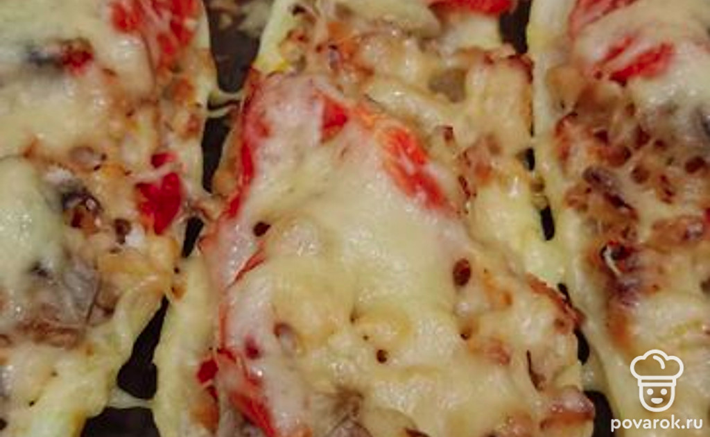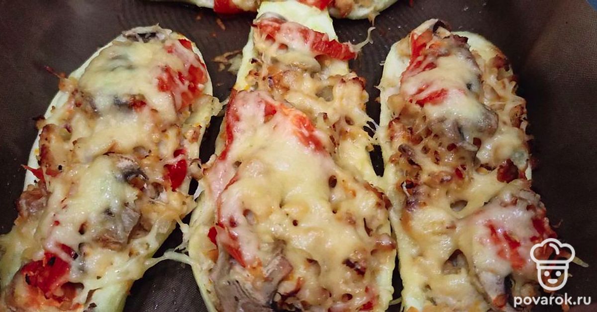 Достаньте кабачки, посыпьте сверху тертым сыром. Отправьте в духовку еще минуты на 3, чтобы сыр расплавился.