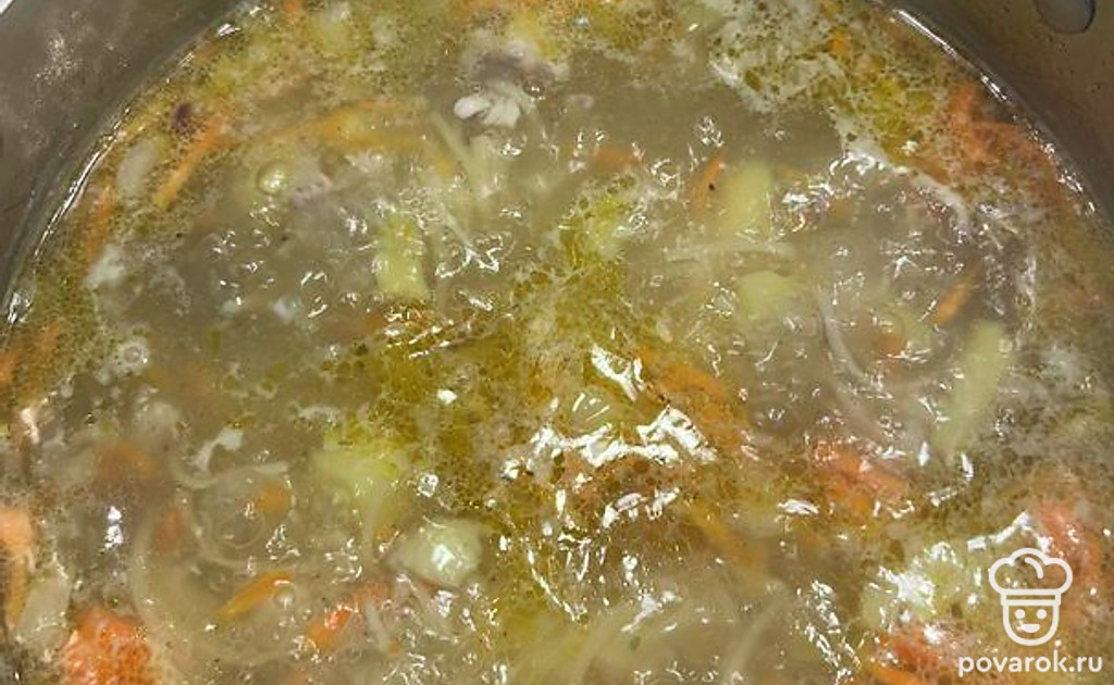 Добавить лавровый лист за 5 минут до готовности. Дать супу настояться 15 минут.