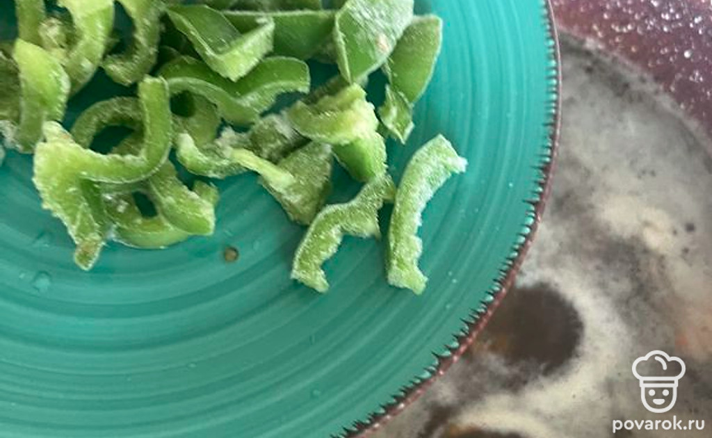 Если картошка сварилась, кидаем сладкий перец.