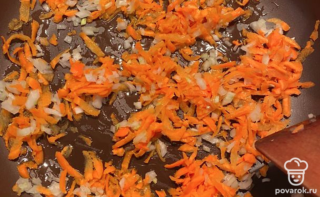 Готовим зажарку. Для этого лук и морковь обжариваем на растительном масле.