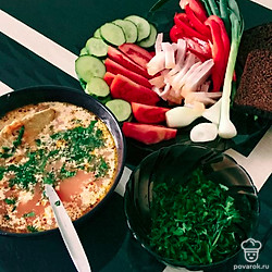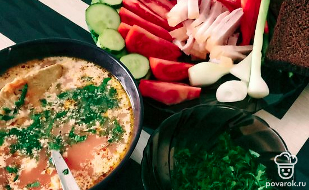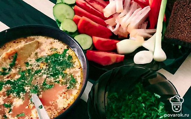 Ну какой же борщ без сала и зелёного лука? Обязательно добавьте кусочек бородинского хлеба и сметану. Приятного аппетита!