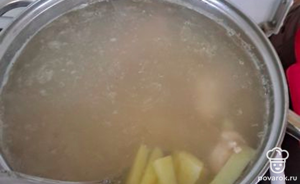 Чистим, режем овощи. Картошку нарезаем соломкой и отправляем к будущему рассольнику.
