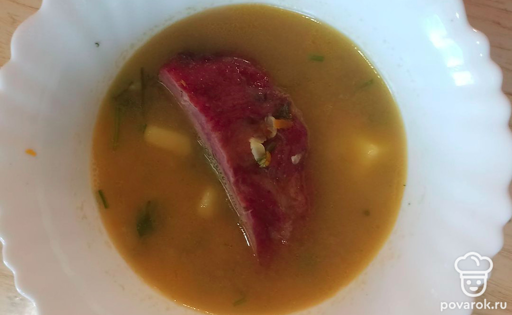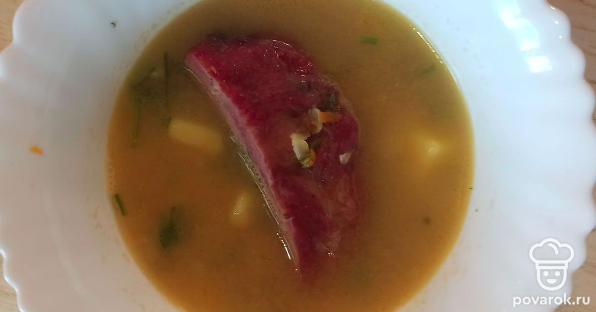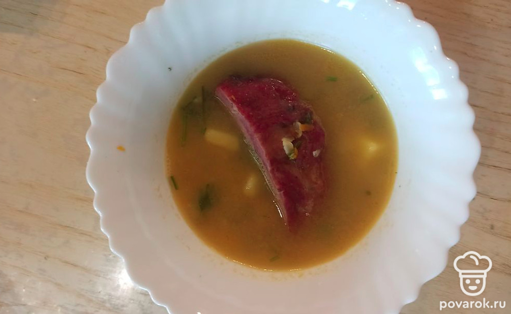 Рисовый суп с копчеными ребрышками, картошкой и морковью